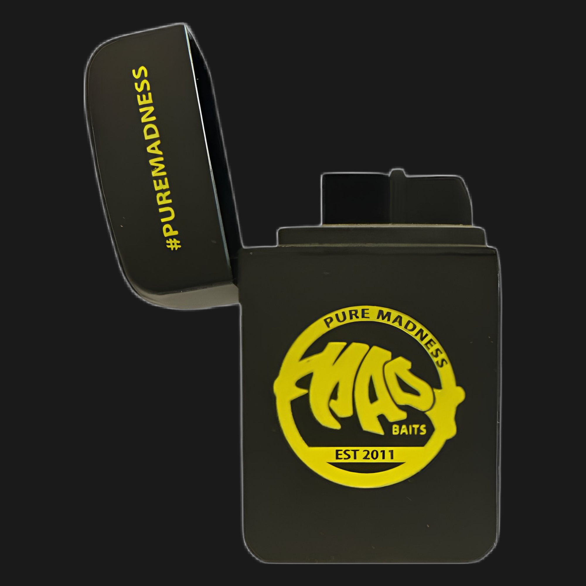 The Mad Windproof Jet Flamed Lighter is perfect for burning down and blobbing your bait floss to secure your pop ups  onto your chod, hinge, or ronny rig or even lighting your stove for a cuppa.